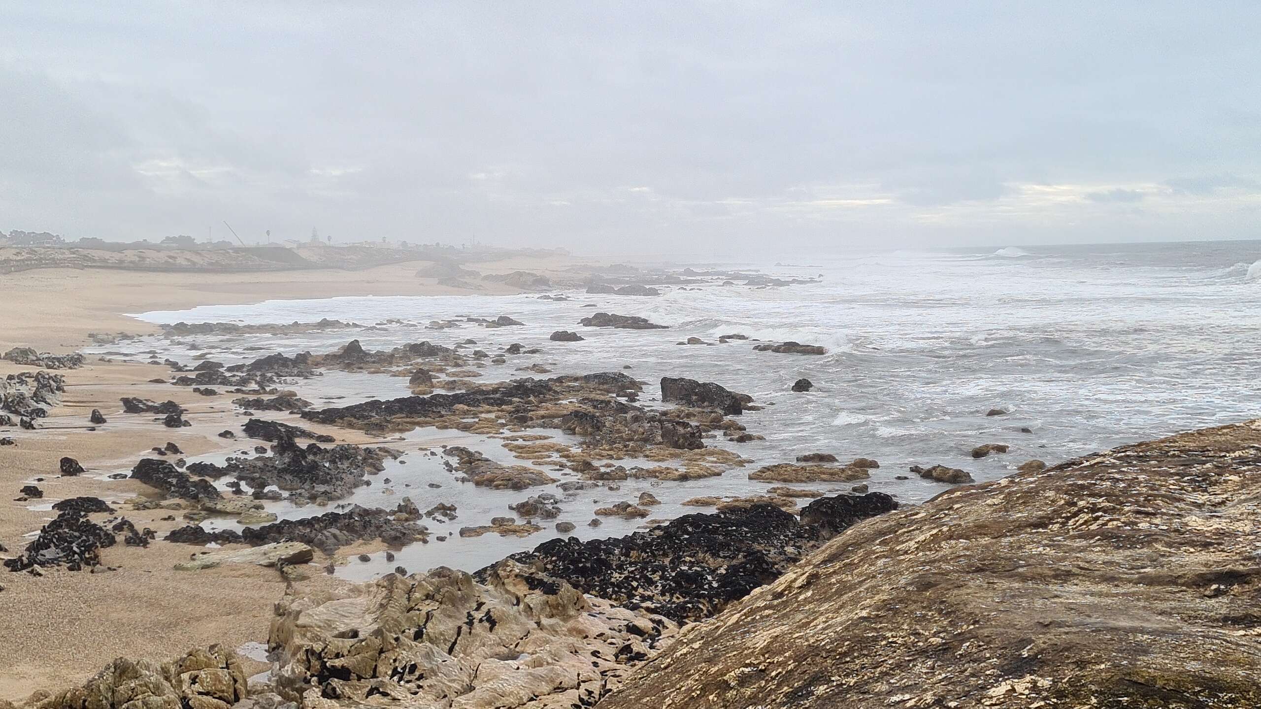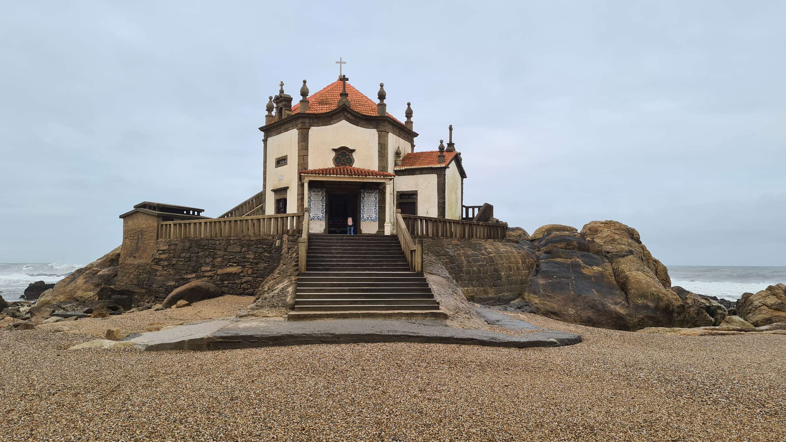 Une escapade en matinée lors de notre séjour en novembre 2023. Le temps était très couvert, un peu pluvieux même, il n’y avait pas grand monde sur les lieux qui pourtant en été se transforment en petite station balnéaire. Nous avons traversé la largeur de la plage de Miramar jusqu’à la chapelle qui trône sur un rocher au bord de l’eau : « Capela do Senhor da Pedra ». Nous avons ensuite fait un bout de chemin sur le ponton vers le nord, mais avons rapidement fait demi-tour, car la pluie commençait à tomber. Quelques photos et vidéo ci-dessous illustrent cette sortie matinale.