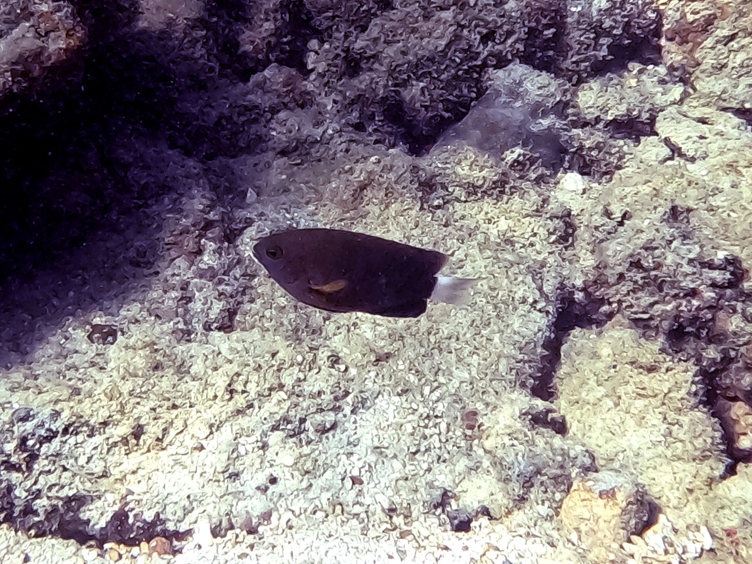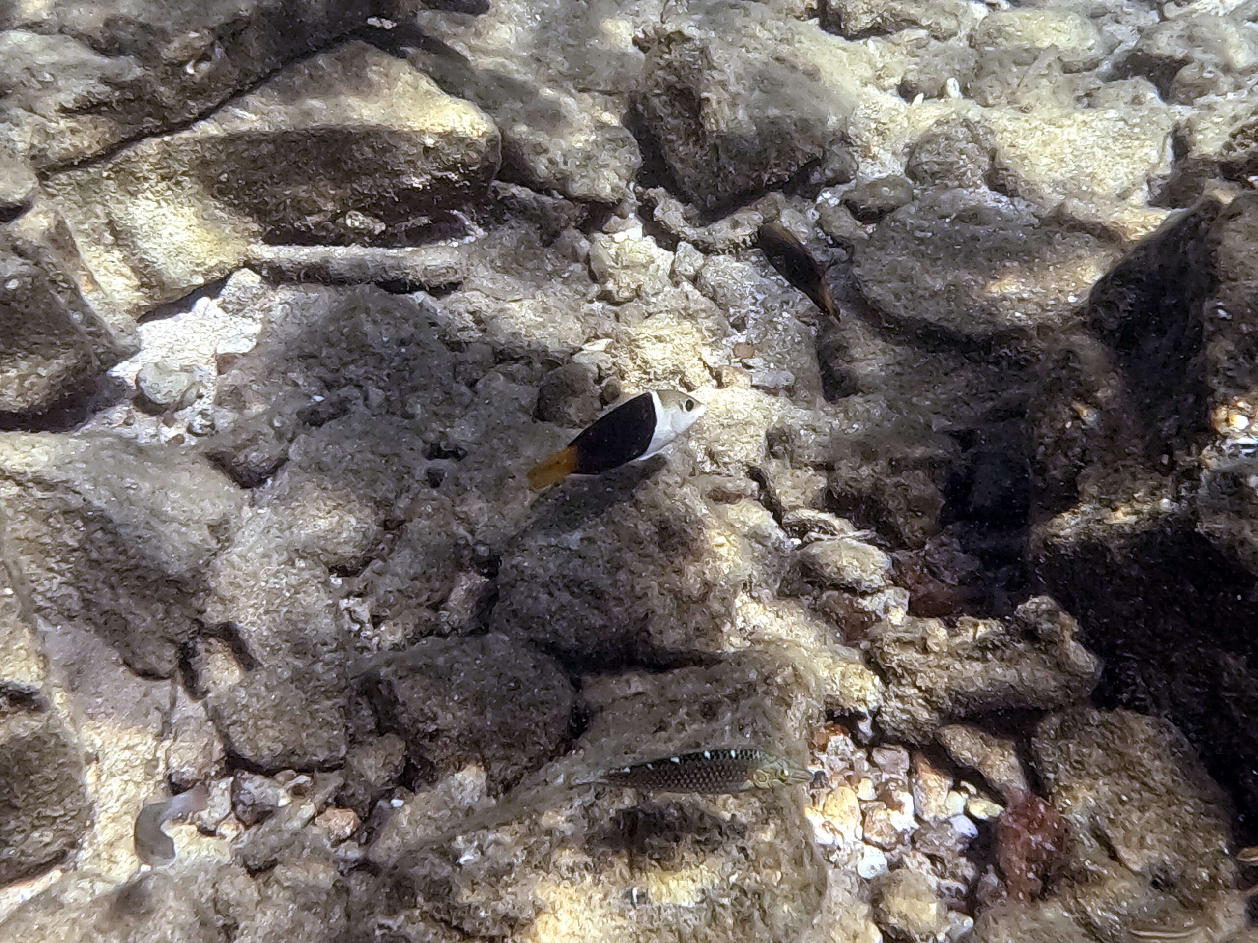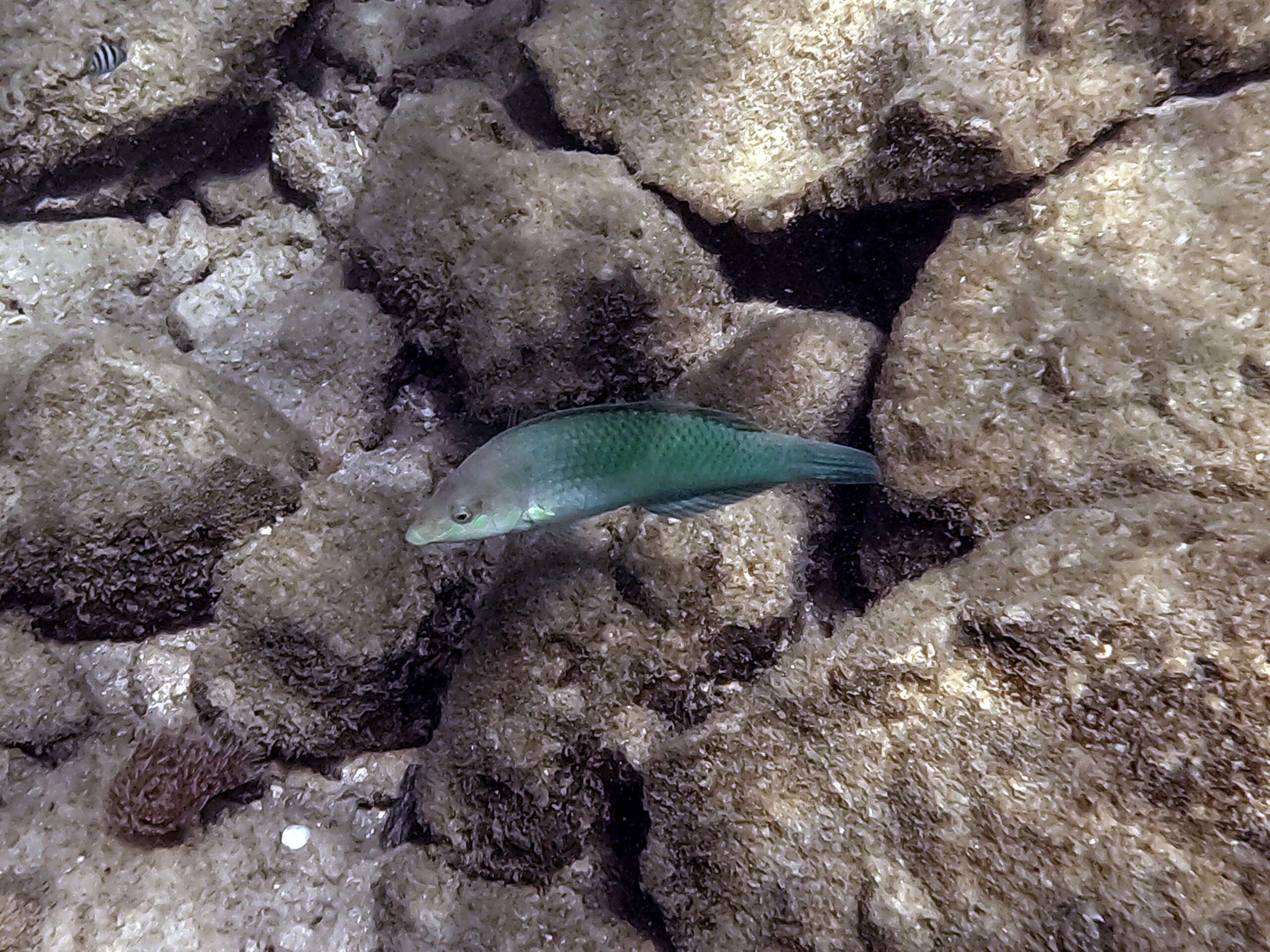 En décembre 2023, j’ai tenté de faire du snorkeling sur la partie le plus au sud de la plage, où il y a des rochers. Cela n’est possible qu’à marée haute, car sinon les rocher sont affleurants et il n’est pas possible de nager sur ce secteur. Le snorkeling n’a rien de bien intéressant, on peut y voir quelques poissons classiques que l’on voit un peu partout sur l’île.