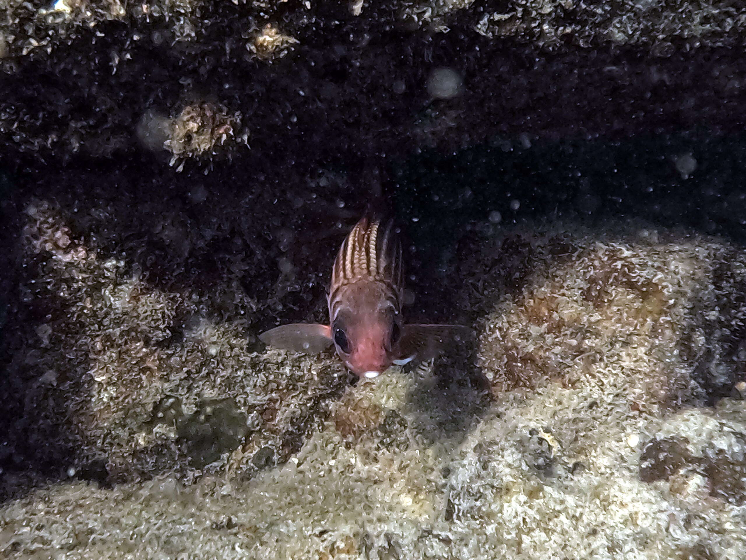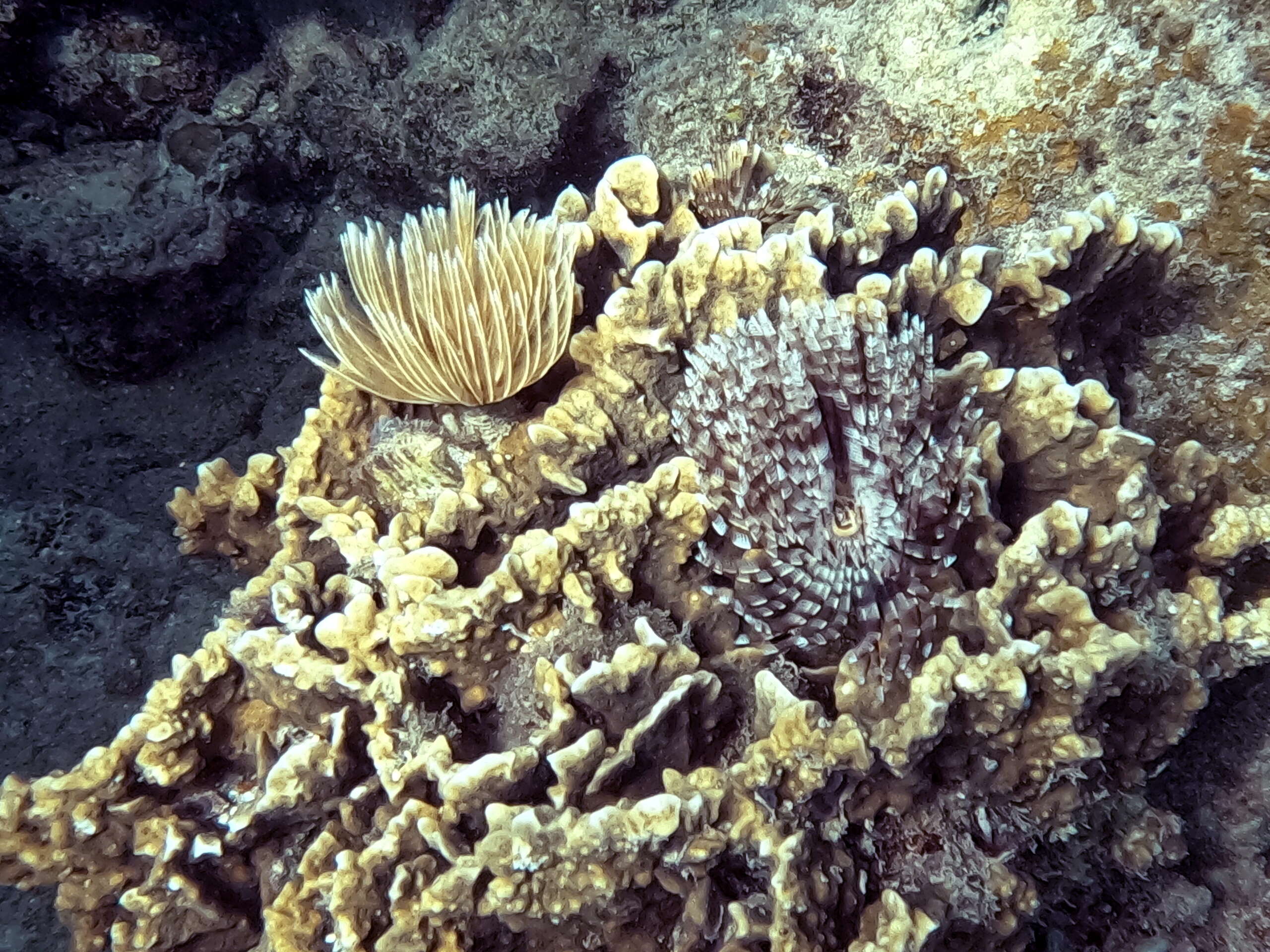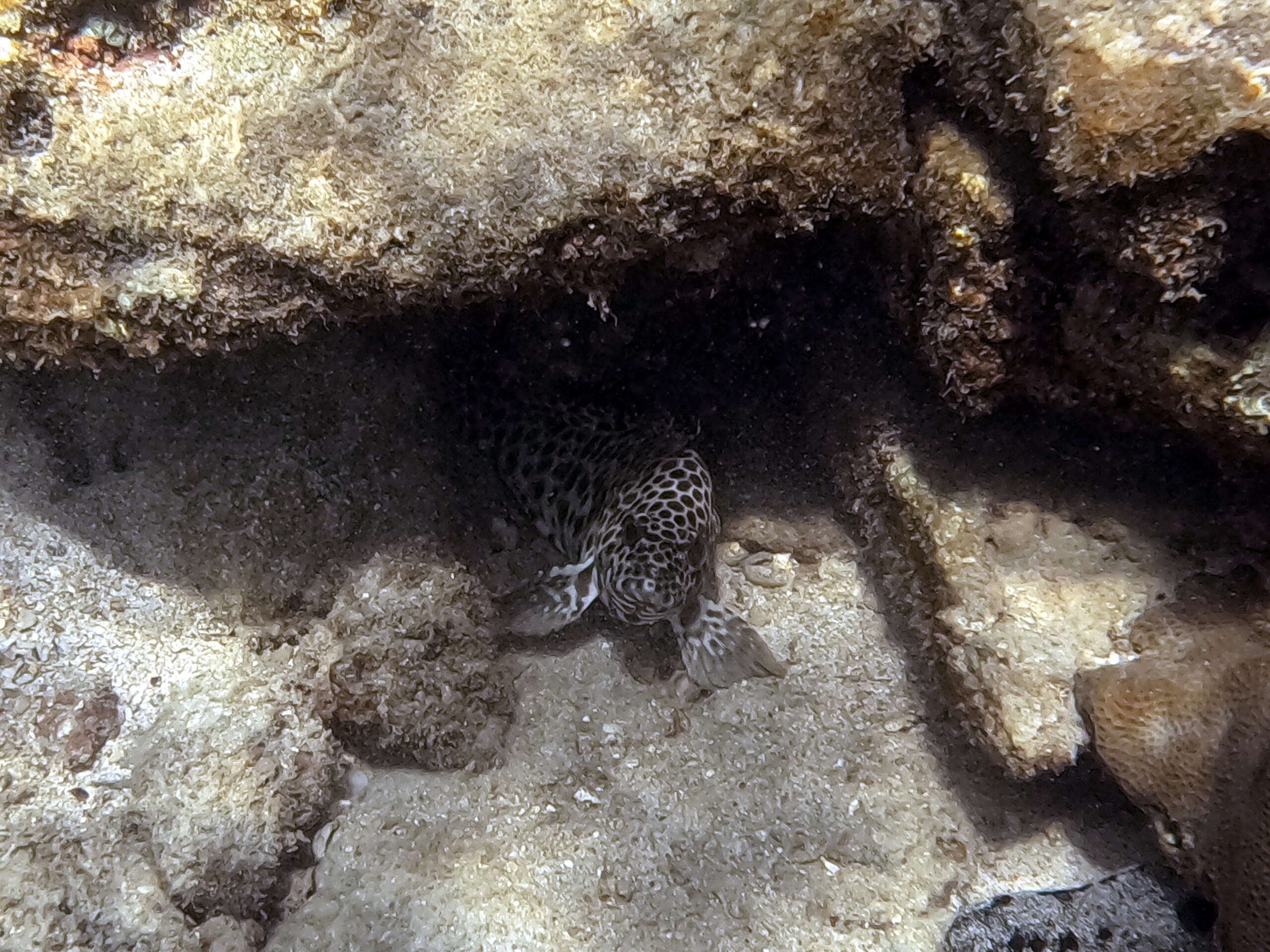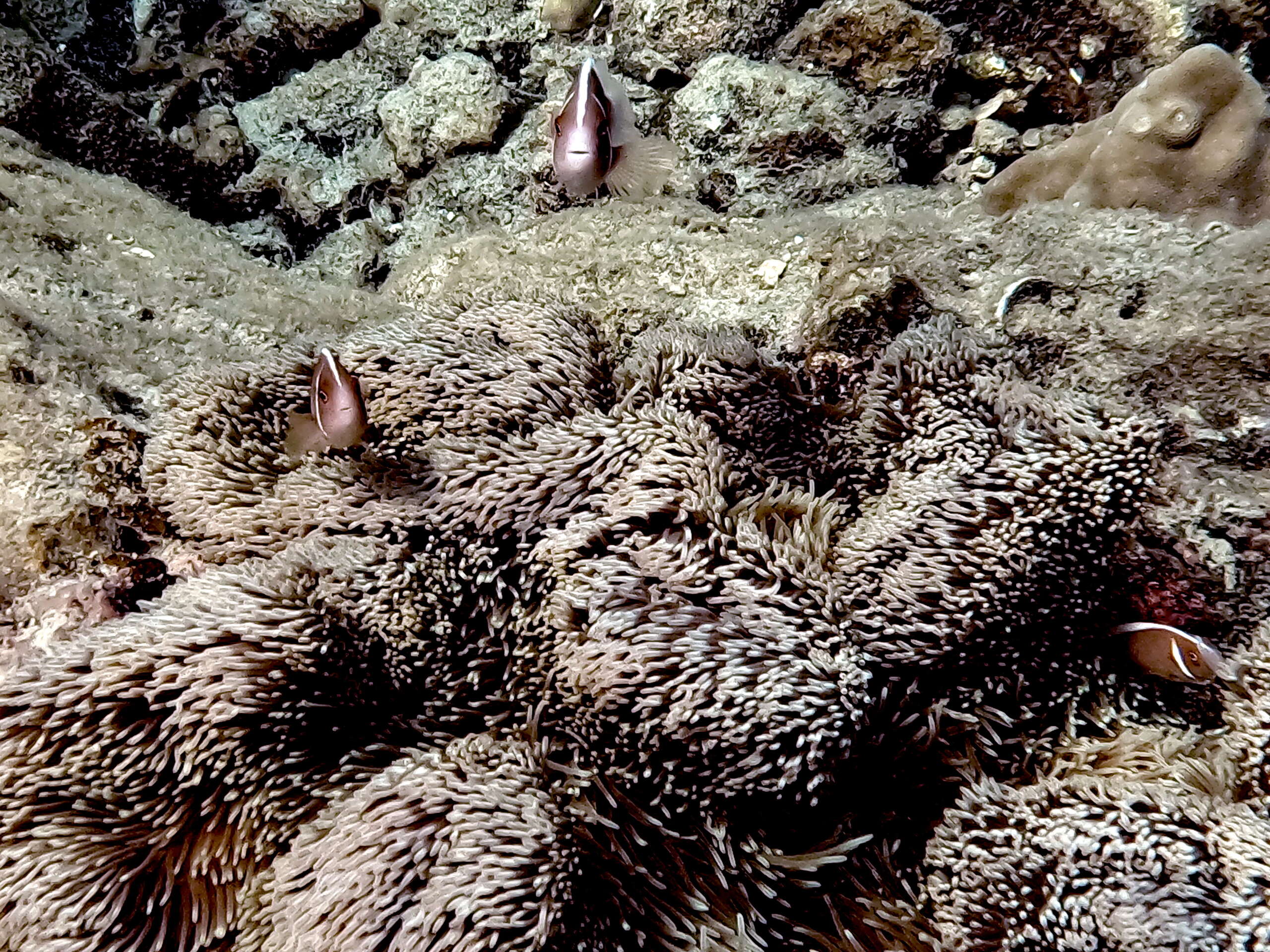 En décembre 2023, j’ai tenté de faire du snorkeling sur la partie le plus au sud de la plage, où il y a des rochers. Cela n’est possible qu’à marée haute, car sinon les rocher sont affleurants et il n’est pas possible de nager sur ce secteur. Le snorkeling n’a rien de bien intéressant, on peut y voir quelques poissons classiques que l’on voit un peu partout sur l’île.