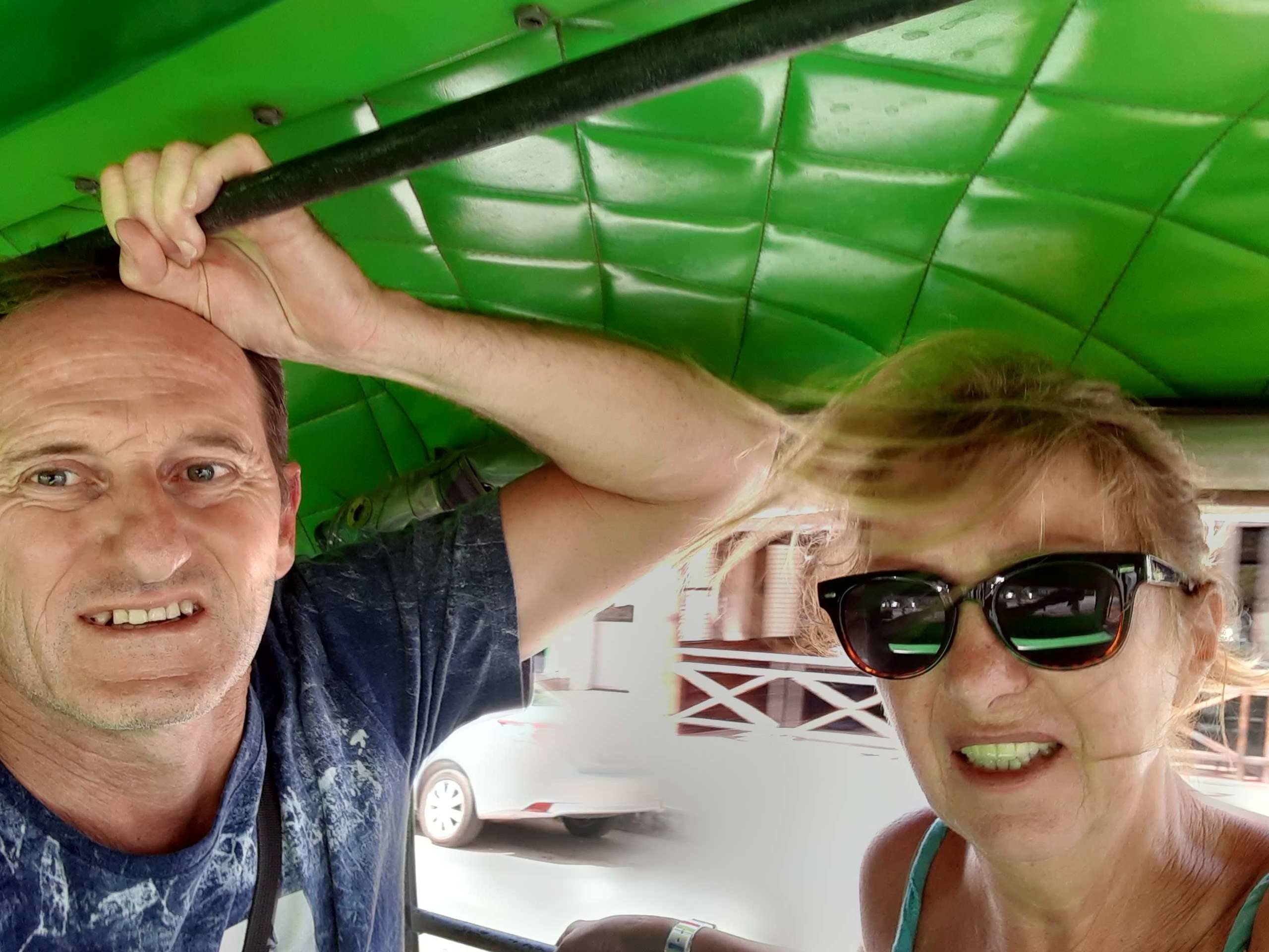 Arrivés aux alentours de Krabi on est à nouveau débarqué en rase campagne où nous montons dans un « Songthaew » (taxi public ouvert avec deux bancs à l’arrière). Nous étions les seuls passagers et nous avons franchi la dizaine de kilomètres restants à grande allure, pour arriver vers 15 h au quai d’embarquement.