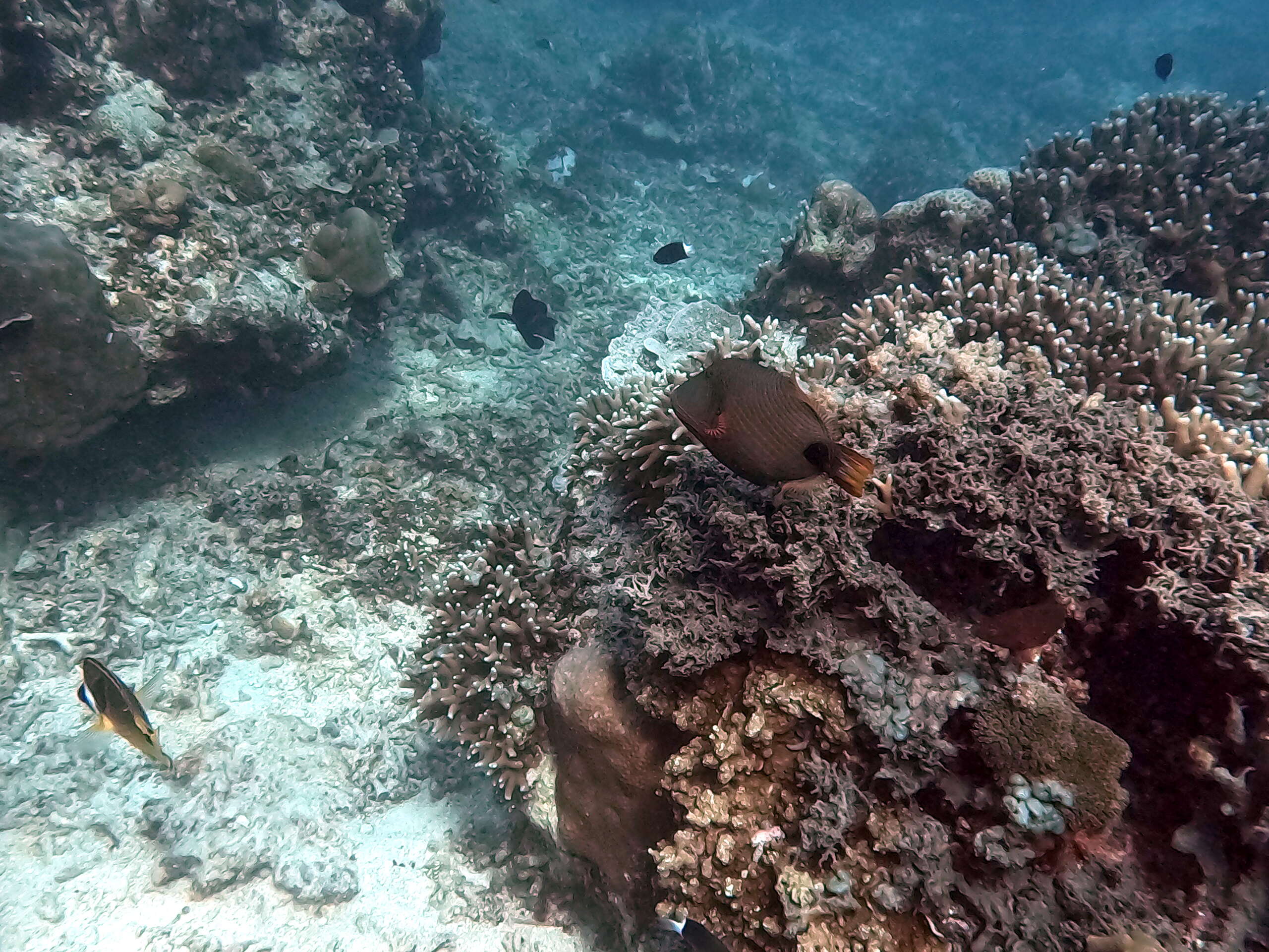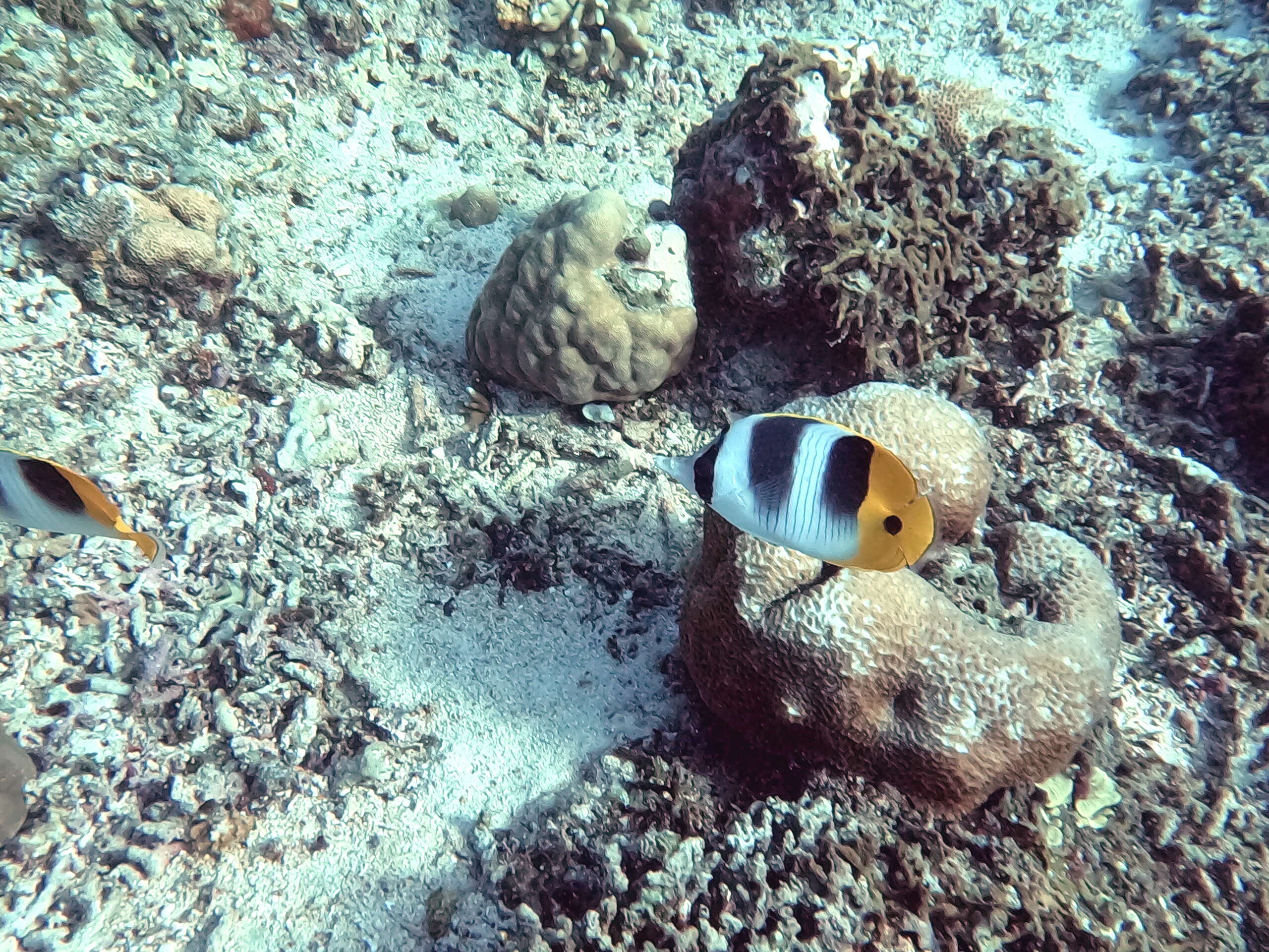 FAUNE & FLORE: Poissons ange nain bicolore, ange à trois taches, bagnard, baliste noir, baliste strié, baliste picasso clair, baliste à moustache, baliste à queue rose, baliste picasso à tache noire, ballon à taches noires, bonite à dos rayé, capitaine saint pierre, chirurgien à queue barrée, chirurgien à poitrine blanche, chromis bleu-vert, clown de clark, clown à nageoires orange, cocher cornu, coffre pintade, diagramme oriental, idole des maures, nason bossu, nason zébré, papillon orné, papillon de meyer, papillon à chevrons, papillon raton laveur, papillon à deux selles du pacifique, papillon à larme du pacifique, papillon à selle noire, papillon à tache ovale, perroquet à cinq selles, platax à longues nageoires, poisson flute, poisson rasoir, soldat violacé, tortue verte, tortue imbriquée, trompette de l’indopacifique, coraux divers.