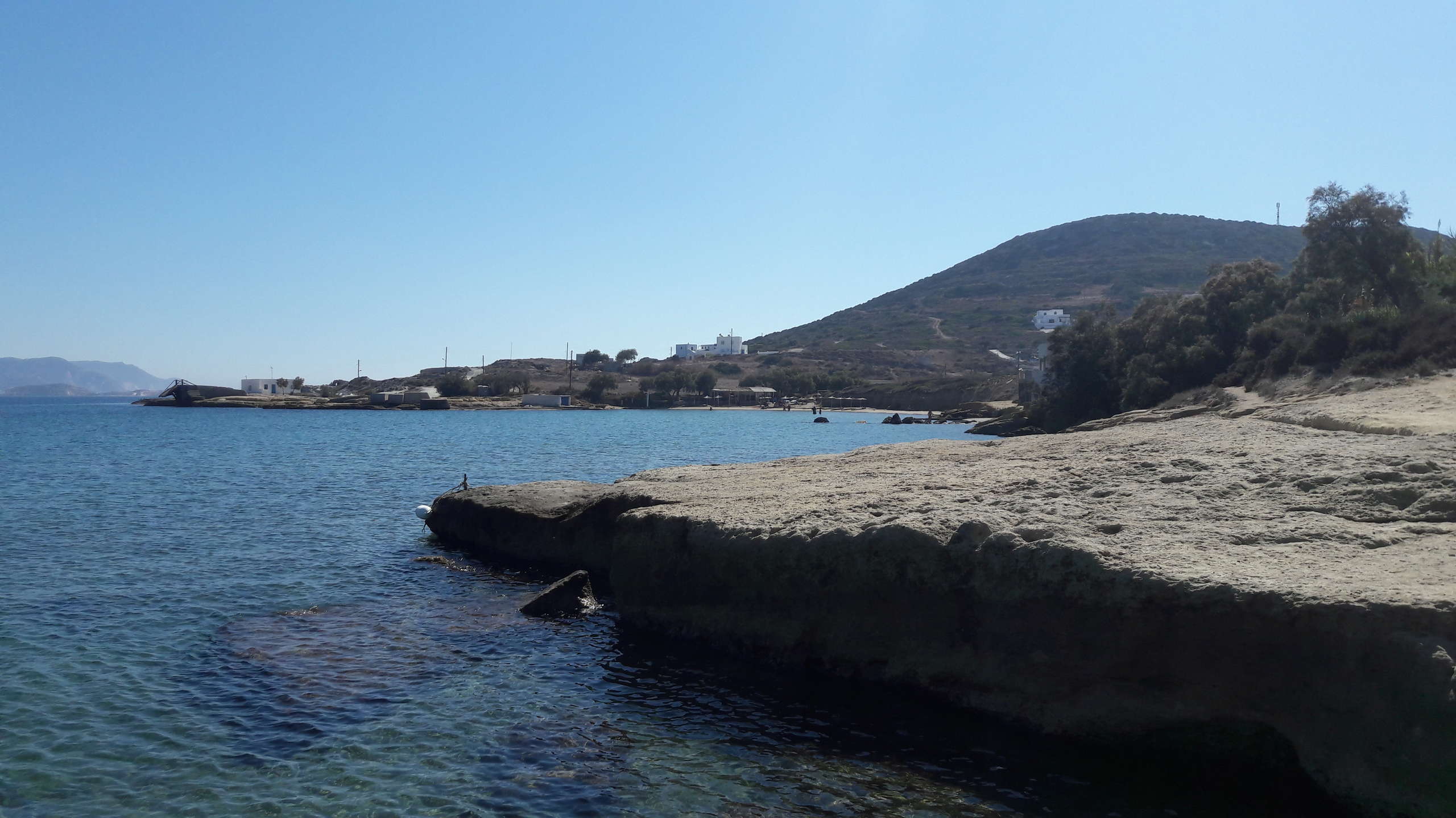 Papafragas possède une côte très découpée formant des cavités et petites criques. Pollonia est une station balnéaire avec un port et plusieurs petites plages.