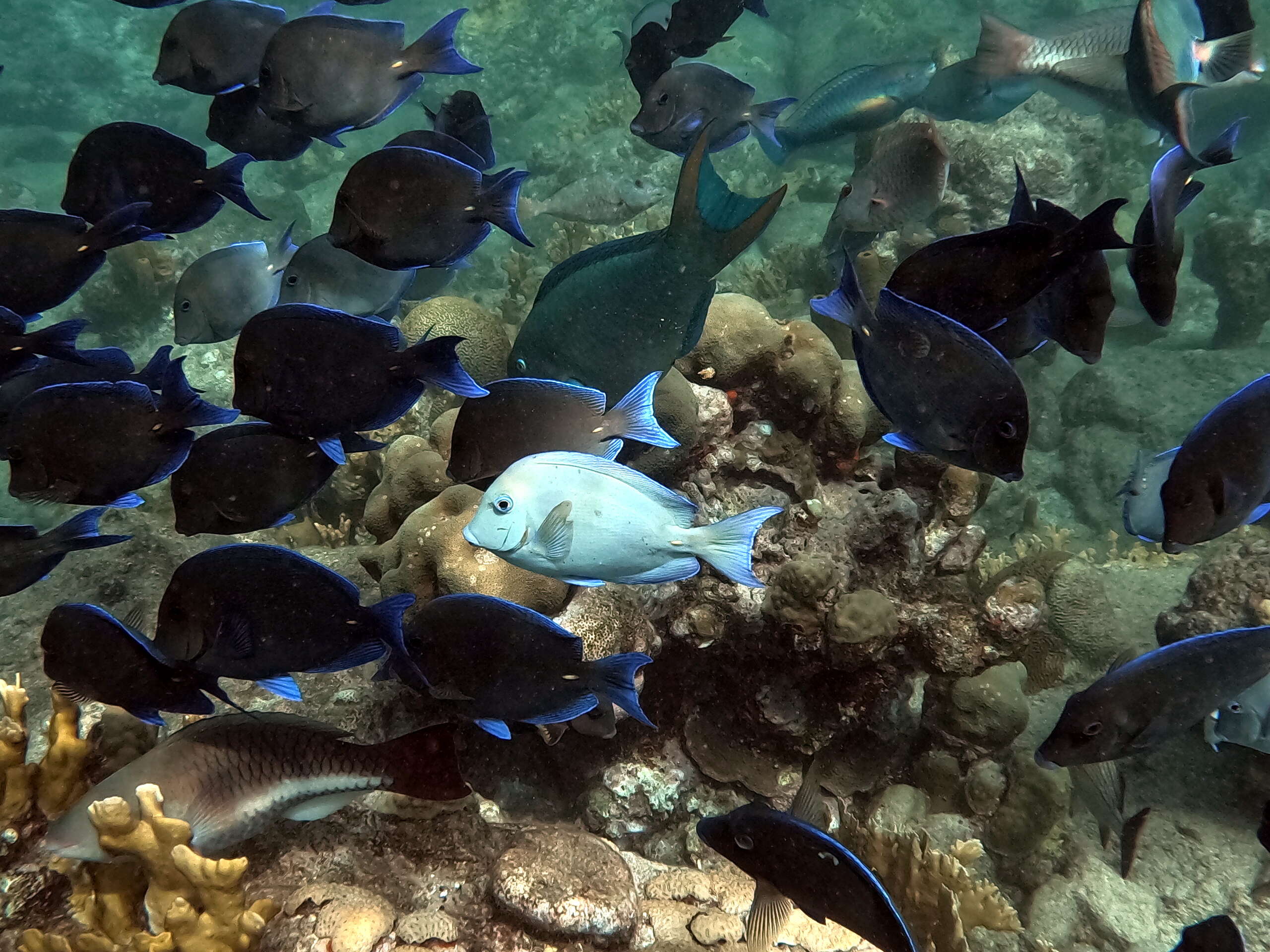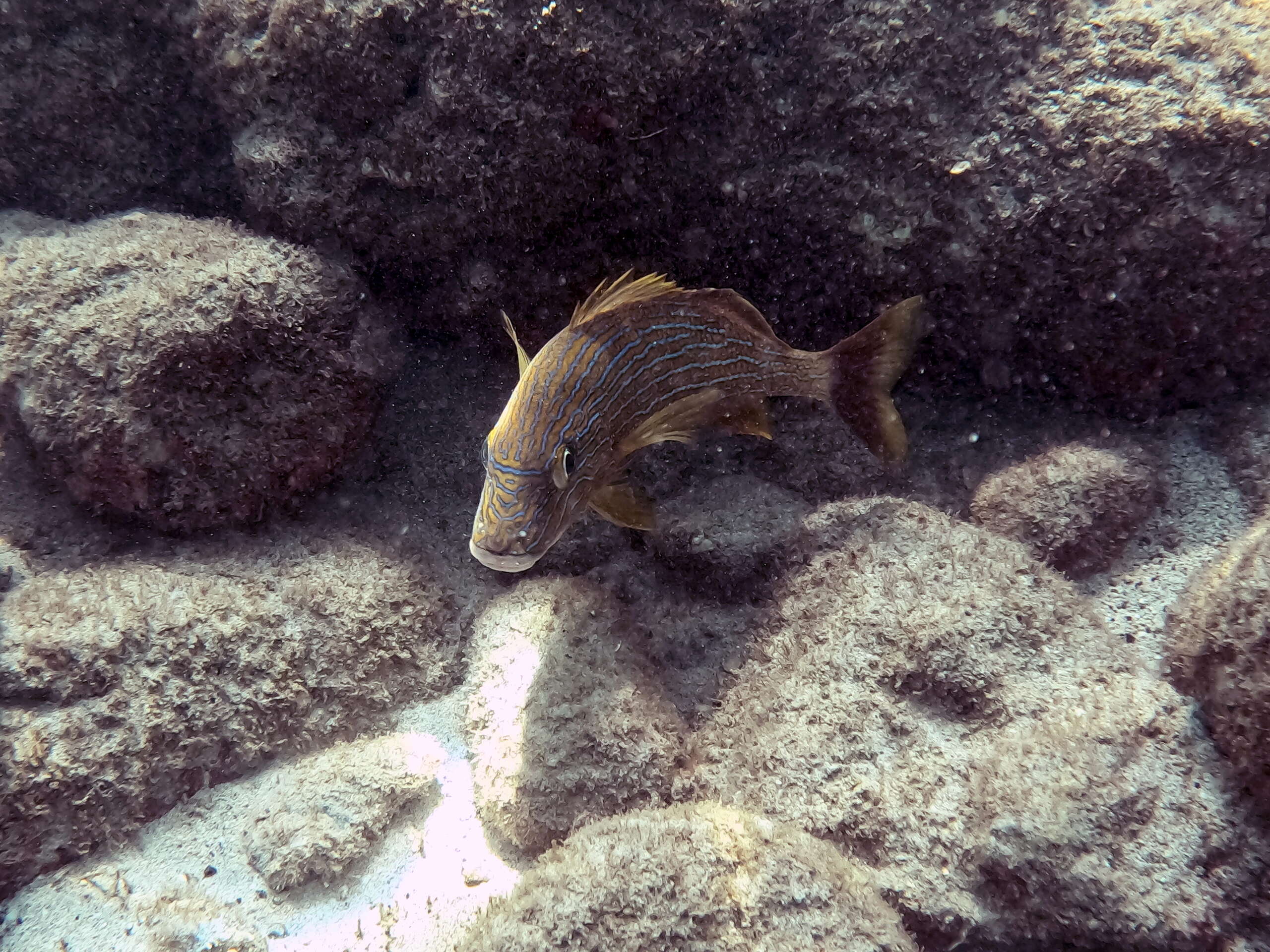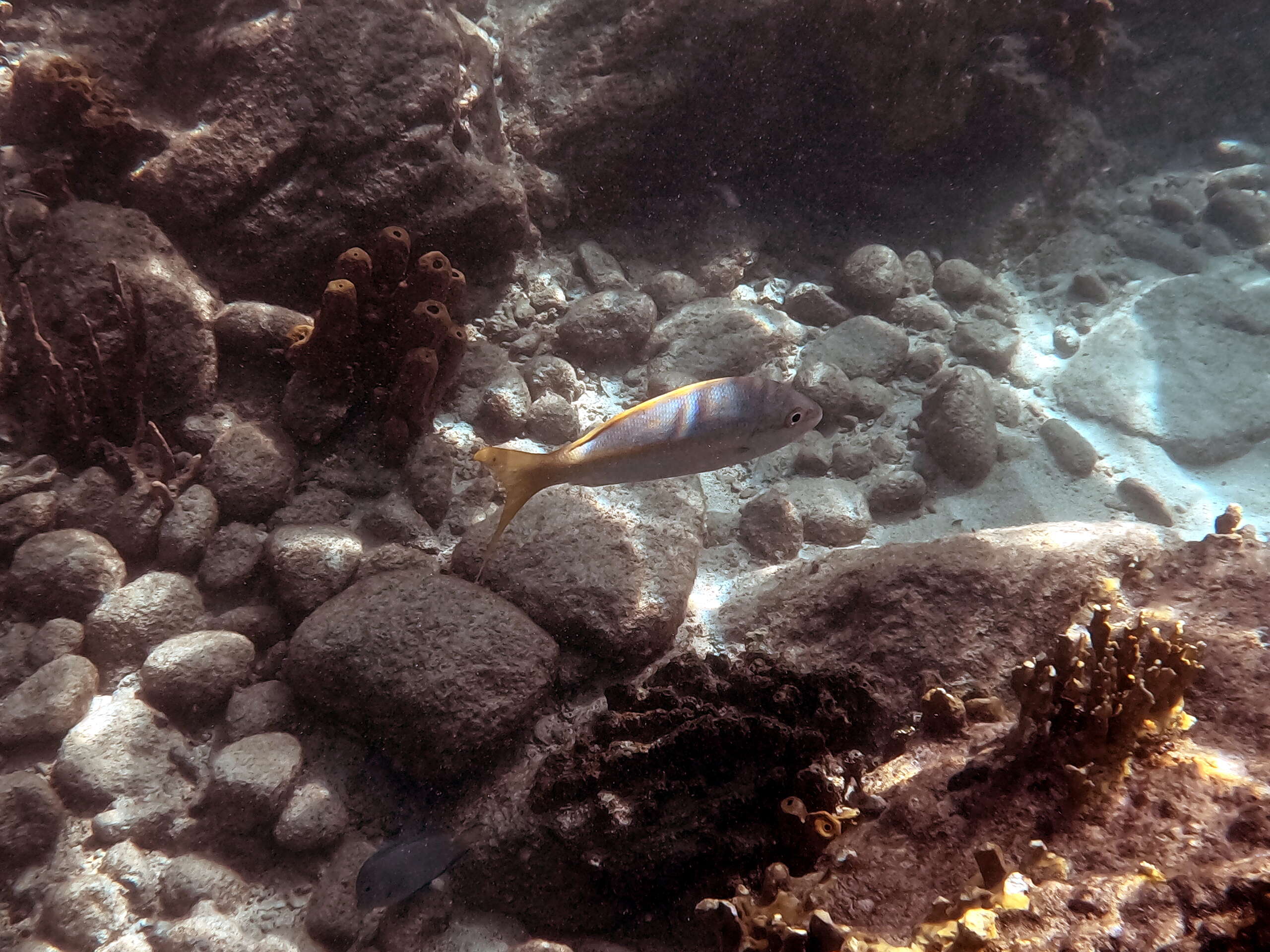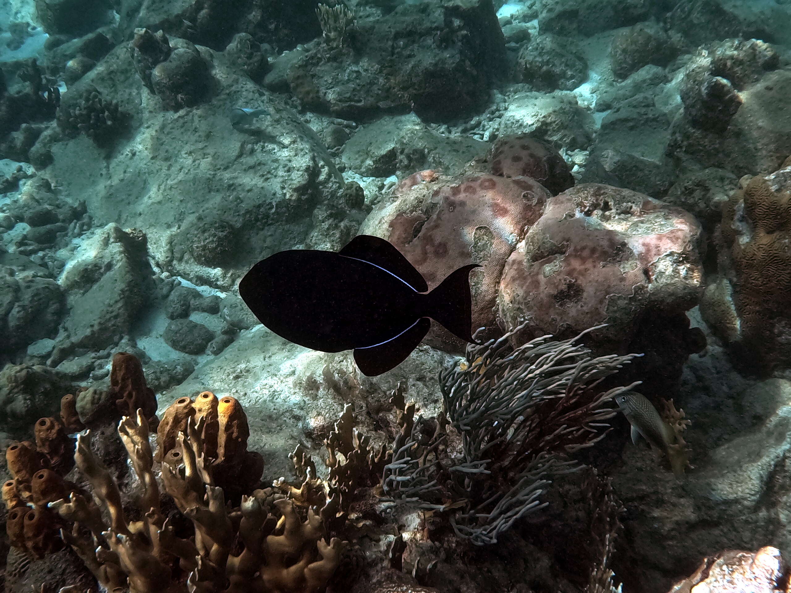 La zone de snorkeling que nous avons visitée se situe au niveau des îlets Pigeon, le spot appelé « la piscine » et celui appelé « le jardin de corail ». Ces deux spots sont très poissonneux et intéressants pour la diversité de la faune et flore que l’on y trouve. Il y a des bancs de poissons chirurgiens bleus et noirs ainsi que des bancs de balistes noirs. J’ai croisé un beau poisson lime qui se nomme bourse cabri, des demoiselles, cardinal queue fine, gorette jaune ou bleue, poisson lézard et bien d’autres espèces. Il y a également de beaux coraux comme les gorgones éventail ou les cornes d’élan, ainsi que de belles éponges comme les tuyaux d’orgues ou les barils de rhum. En résumé, la réserve de Cousteau est un très beau spot de snorkeling et pourtant nous n’avons pas eu le temps de visiter des spots tout aussi intéressants comme le jardin des tortues et le jardin japonais qui parait-il sont aussi beaux que ceux des îlets Pigeon. Les photos et vidéos ci-après montrent la richesse et la diversité des fonds marins visités.